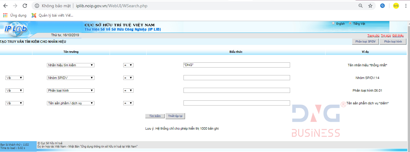 Đầu tiên, bạn cần truy cập theo địa chỉ sau: http://iplib.noip.gov.vn/WebUI/WSearch.php